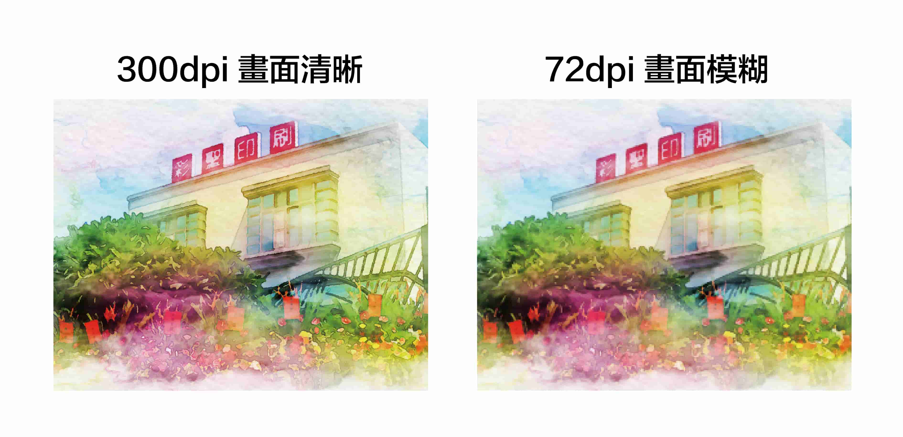 解析度太低會造成圖像馬賽克,為確保印刷品質,圖片(照片)解析度至少要300dpi以上。